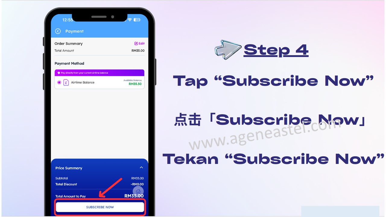 Tekan “Subscribe Now” untuk aktifkan pelan
